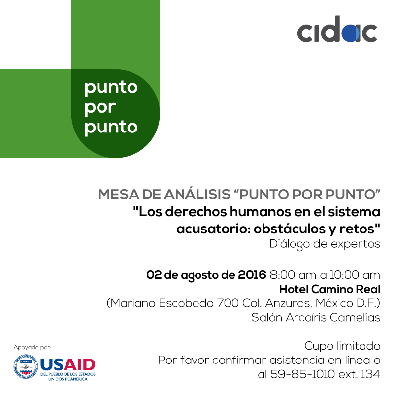En el marco de Proyecto Justicia, iniciativa del Centro de Investigación para el Desarrollo, A.C. con el objetivo de contribuir al fortalecimiento del estado de derecho en México, invitamos al desayuno “Punto por punto”. Este evento forma parte de una serie de diálogos durante los cuales operadores, académicos, funcionarios y otros expertos nacionales o internacionales puedan aportar argumentos actuales, novedosos e informados sobre temas de interés en materia de justicia penal.