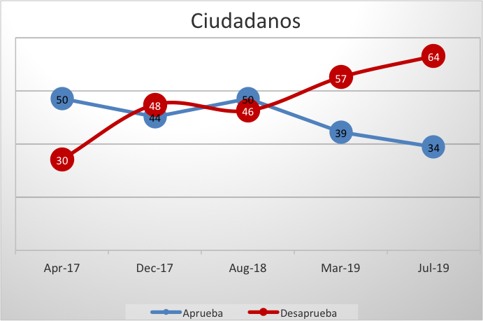 El presidente Enrique Peña Nieto registró el nivel de aprobación más bajo desde el sexenio de Ernesto Zedillo quién enfrentaba contexto de crisis económica severa. De acuerdo a la última encuesta del periódico Reforma, el 64% de los ciudadanos encuestados desaprueba el trabajo del presidente Peña y sólo el 34% lo aprueba. Los líderes de opinión también tienen una mala percepción del desempeño del Jefe del Ejecutivo pues la aprobación se situó en 15% y la desaprobación llegó al 84% (ver gráficas).