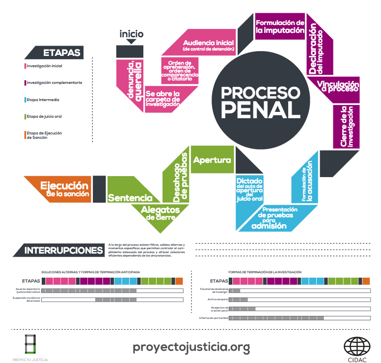 Un proceso penal puede ser tan complejo como las circunstancias en las que se presente y el rumbo que tome su investigación. Sin embargo, es posible identificar 5 grandes etapas del proceso dentro del nuevo sistema de justicia penal y los momentos clave que ocurren en cada una de ellas, así como posibles terminaciones anticipadas.